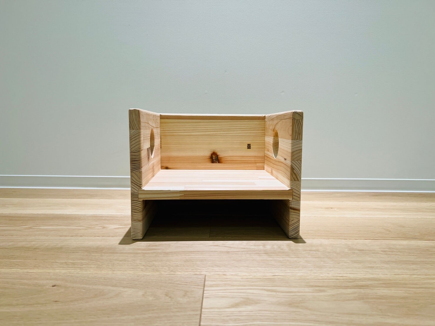 椅子ではありますが、向きを変えることでお子様向けの机にもなり、手持ち用に穴が空いている為、持ち運びも簡単に出来るように造りました。